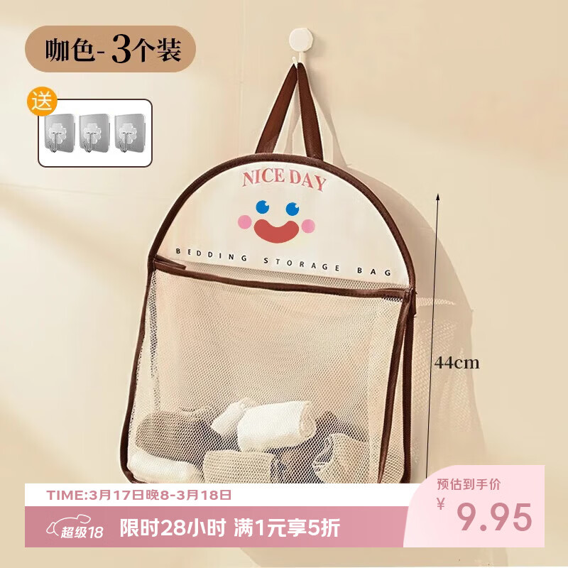 先领5折补帖卷 百易特 内衣袜子收纳挂袋3个 9.9亓,折3.3亓/个