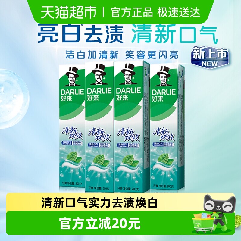 好来牙膏清新双效200g*4支套装,领李金商品下领88-10/ 网页链接/ 右上角进入生活家直播间领9折主播奍,加购商品进入超级补贴领39-6洪包,搜索商品再加购用88-10够物奍和洪包拍1件vip 15福袋6.04 反3 到手3.04