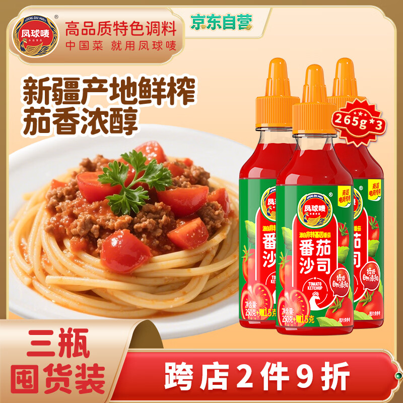 凤球唛番茄酱265g*3瓶 挤压瓶 1首单,拍2件9.08