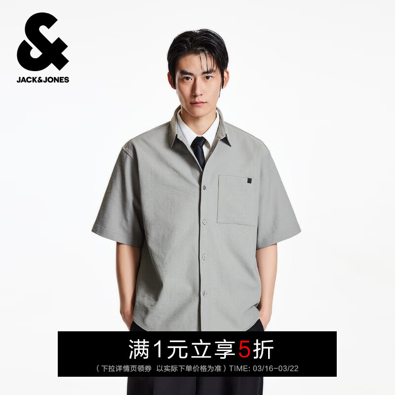 领5折券 杰克琼斯专区任选49.5亓起 翻领肌理感短袖衬衫 11