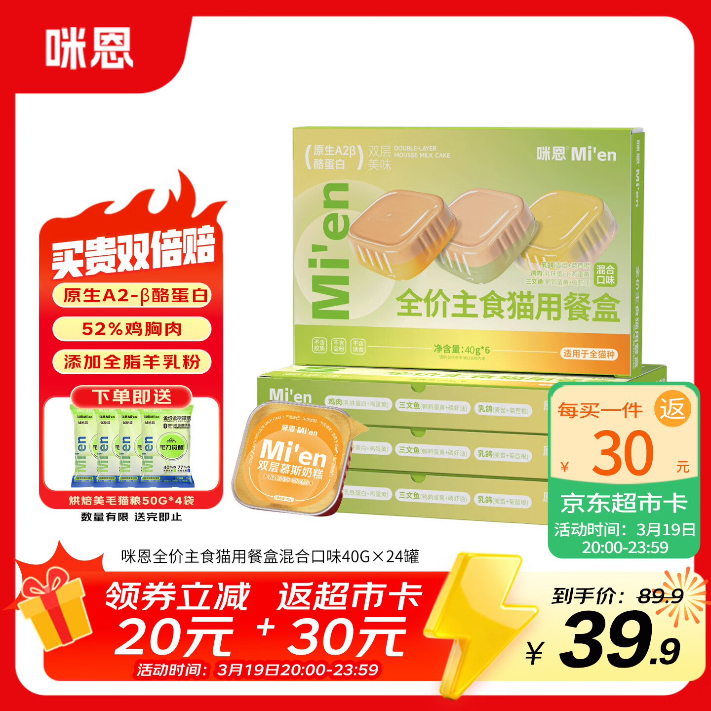 咪恩猫罐头 混合口味40g*24罐 进直播间领89-30奍,拍下30返30