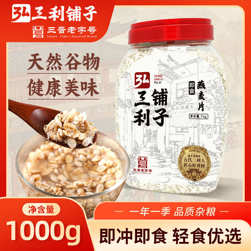 弘三利铺子即食燕麦片1000克罐装
