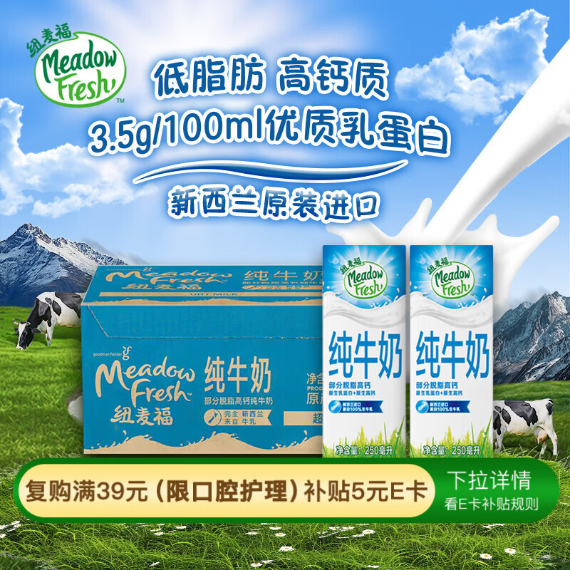 纽麦福 低脂纯牛奶250ml*24盒 49.9亓自营包邮,plus46.