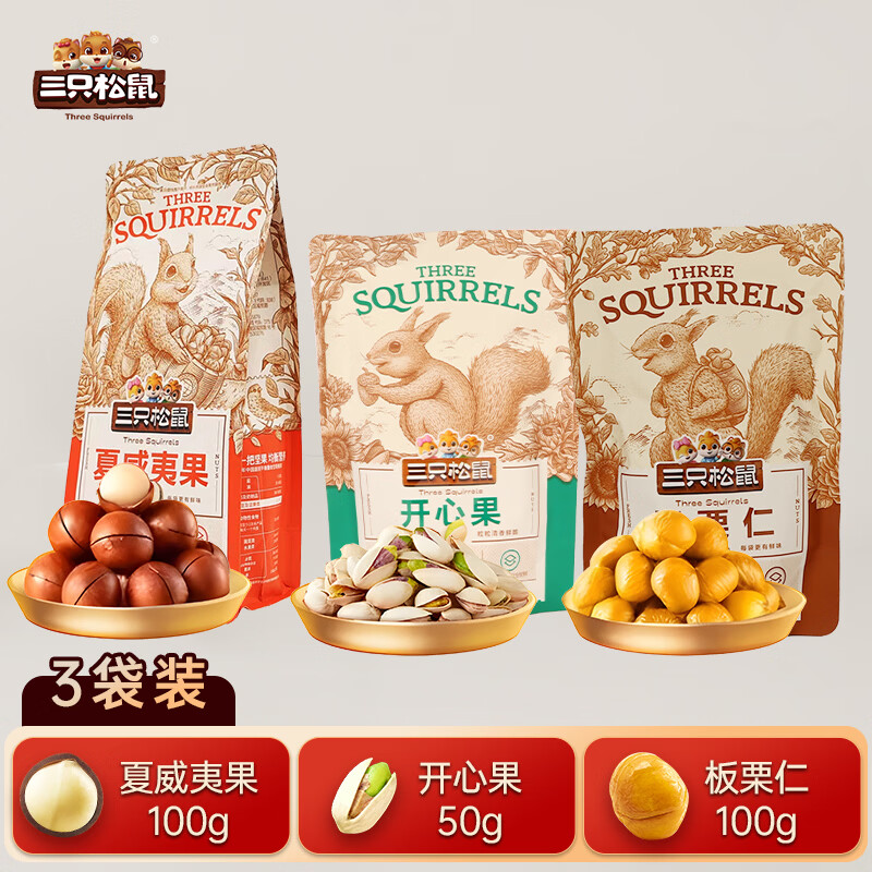 三只松鼠 坚果组合3袋250g
