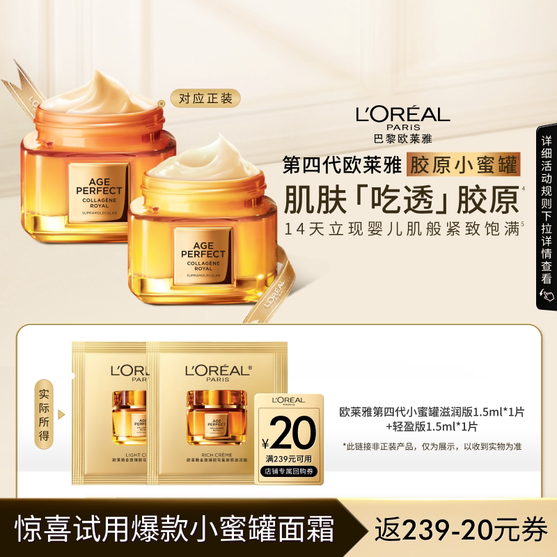 1试用 欧莱雅爆款小蜜罐面霜轻盈版1.5ml滋润版1.5ml