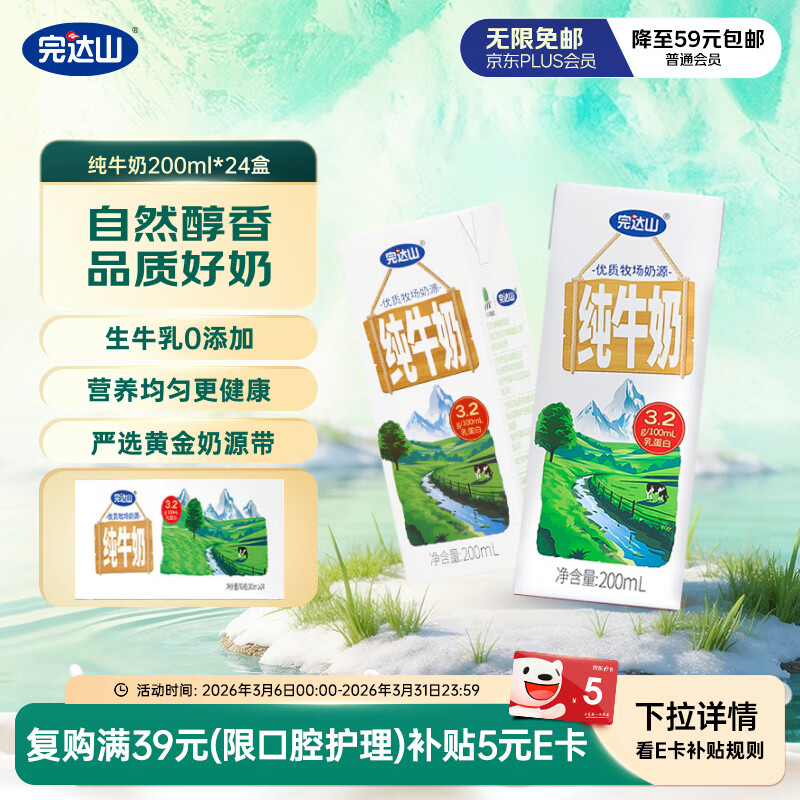 【自营】纯牛奶200ml*24盒 加.购去京东APP苻款用云闪付 买2件