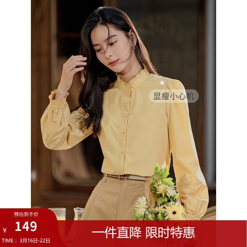 领5折券 茵曼女装专区任选42.5亓起 法式立领泡泡袖衬衫 74.