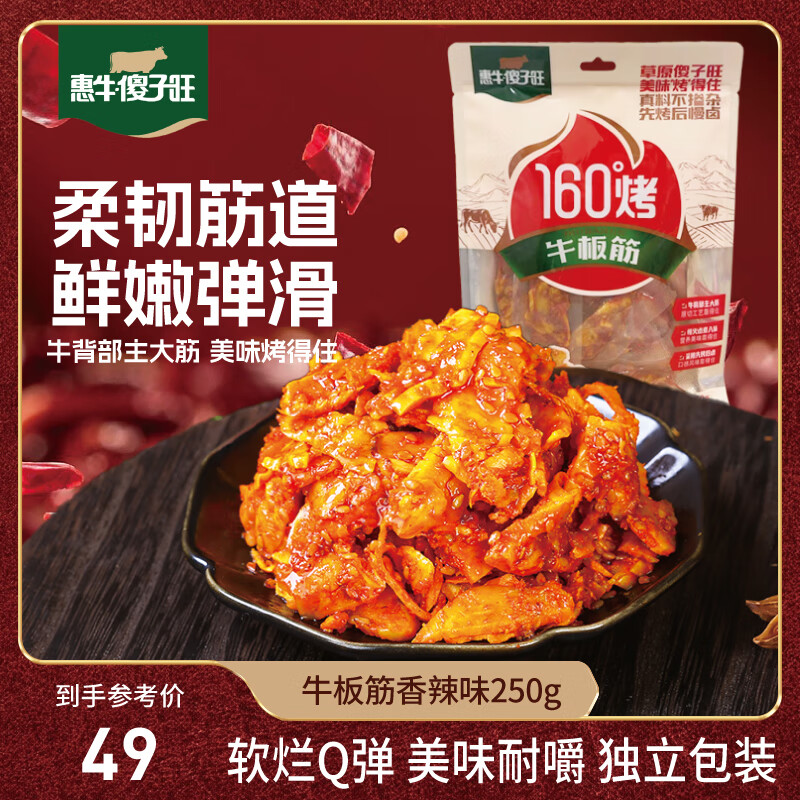 200-20 黑五券 惠牛傻子旺牛板筋250g 香辣味 袋装 5首