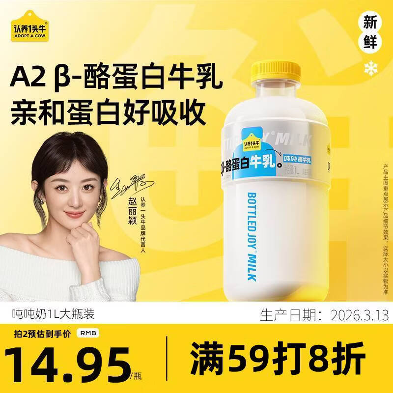 【自营】认养一头牛 吨吨奶 A2β-酪蛋白低温鲜牛奶1L 买3件47.7