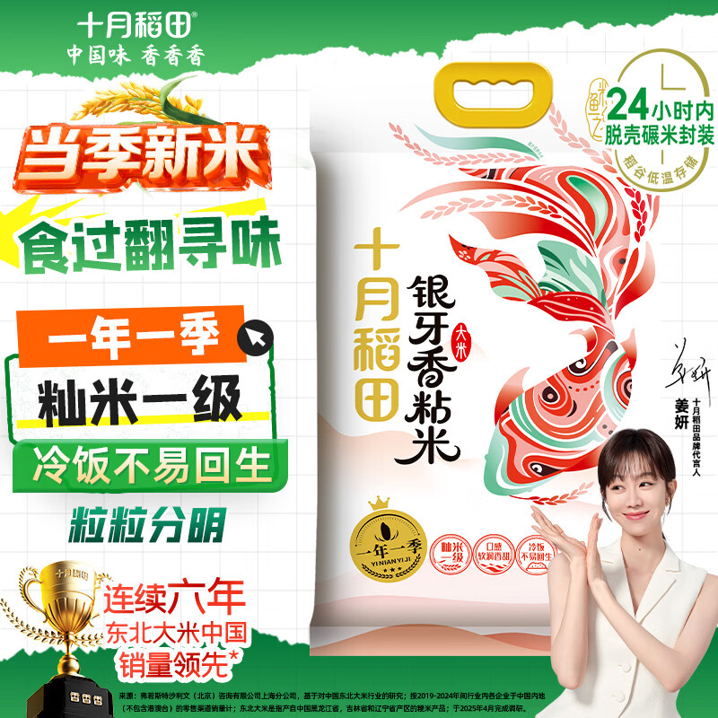 十月稻田 当季新米 油粘米 银牙香粘米10斤 有2首购李金16.16