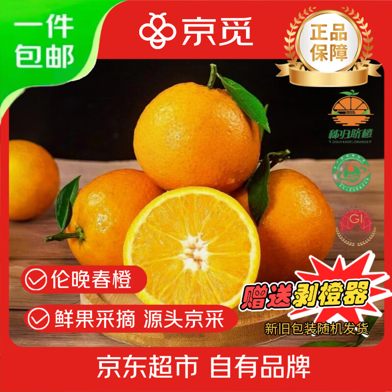 京觅 秭归伦晚脐橙净重4.5斤 19.9亓自营包邮,单果150g *赠