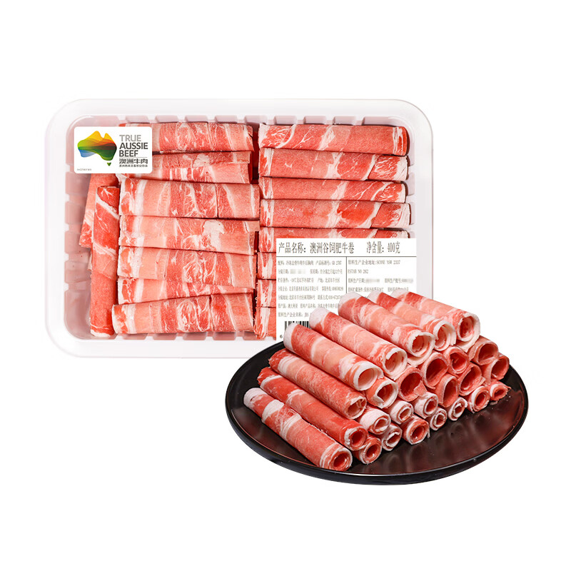 月盛斋 原切肥牛卷400g*2袋 领 拍 64.9亓,肥瘦相间 肉质鲜嫩