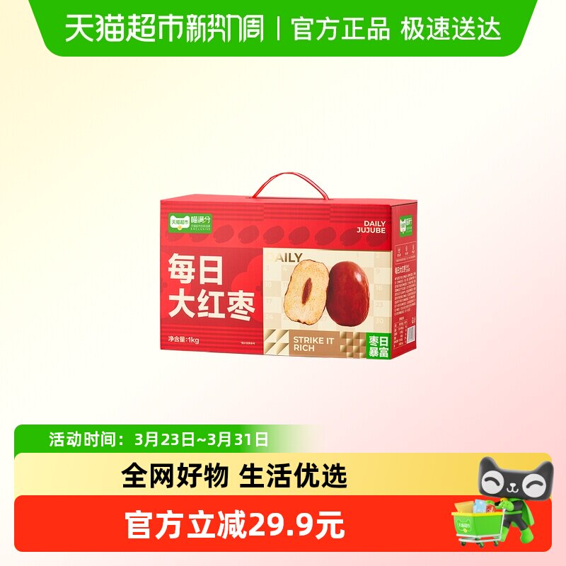 喵满分每日大红枣1000g*2箱 桃金币后19亓 /