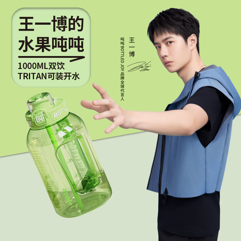 先领2张卷 BOTTLED JOY 耐热运动水壶1L 52.9亓,P