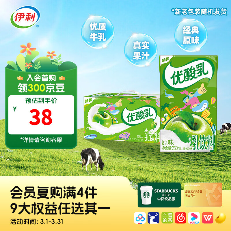 伊利 优酸乳钙奶250ml*24盒 任选3件89.9亓,京仓发货 *才1