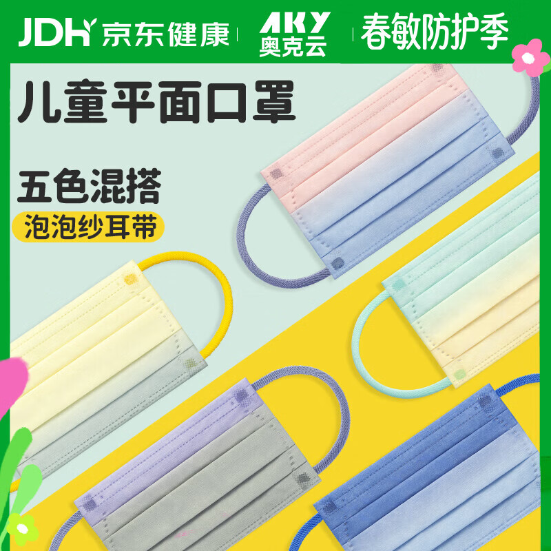 领5-1全品券 叠5首单,付2.38亓 奥克云儿童口罩渐变色独立包装5