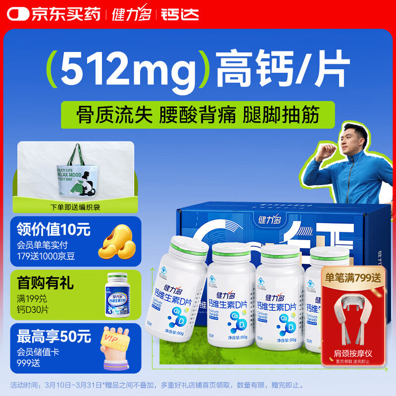 先领79-10卷 健力多 钙片维D片60片*4瓶 洁算云闪付94.2亓