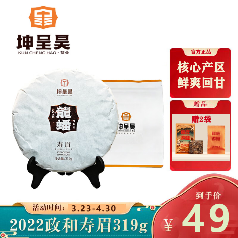坤呈昊 福鼎龙蟠寿眉白茶319g 39亓,再赠寿眉茶叶5g*2袋