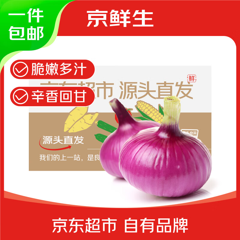京鲜生 紫皮洋葱带皮净重5斤 12.9亓自营包邮,单果300g *产地