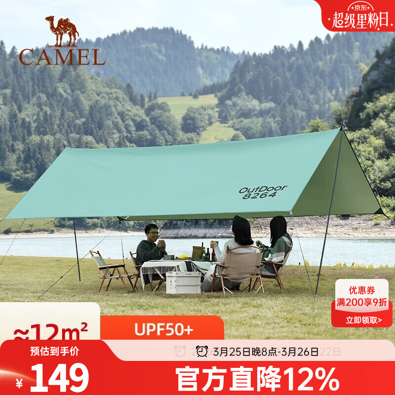 领9折券 plus200-25券 骆驼 户外精致露营天幕帐篷 叠政