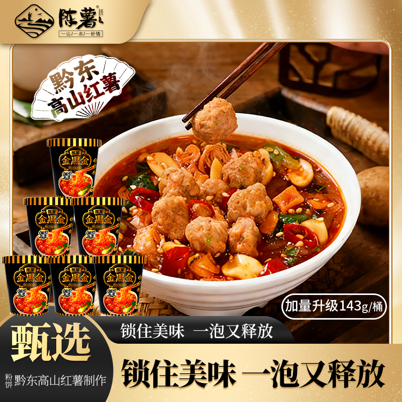 陈薯贵州高山红薯粉 速食酸辣粉143gx6桶装整箱,7.81