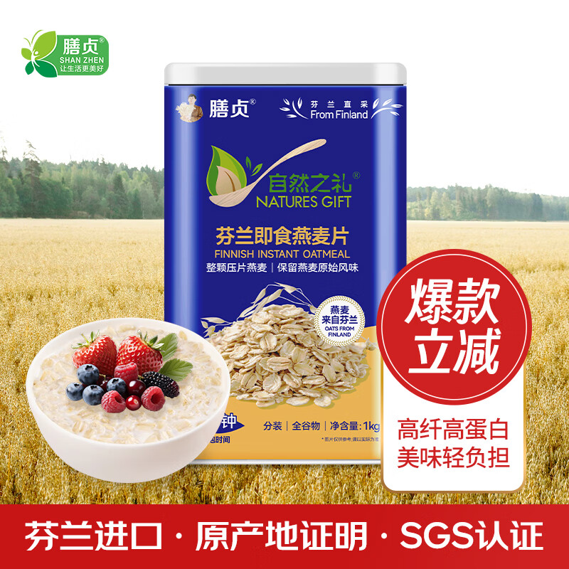 膳贞 芬兰即食燕麦片1000克,拍1件