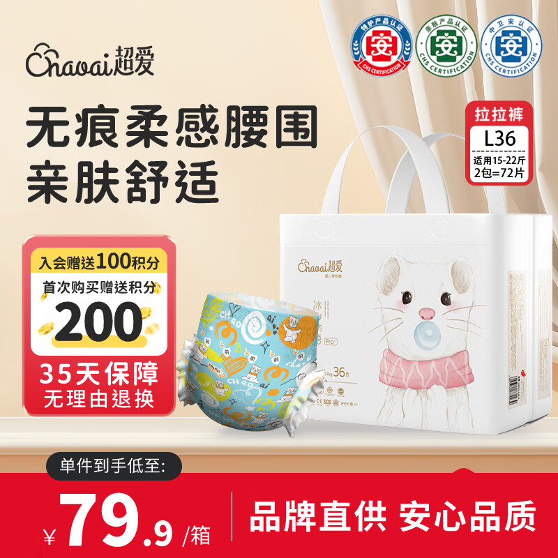 超爱冰山物语pro 婴儿拉拉裤L72片 15首单凑黑五券plus补贴后30