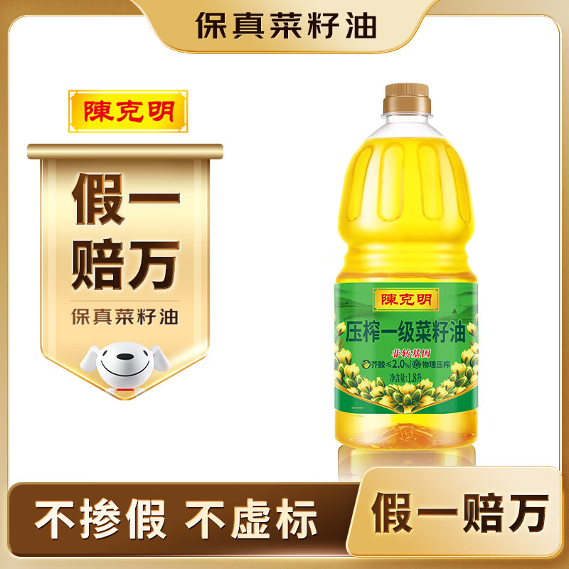 陈克明物理压榨一级菜籽油 1.8L*1桶,1首单,13.91
