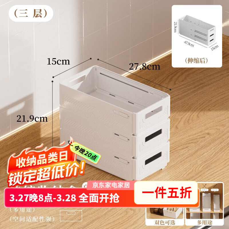 纳份爱领5折券 可伸缩橱柜收纳盒3个 19.9亓 沥水储物盒2个