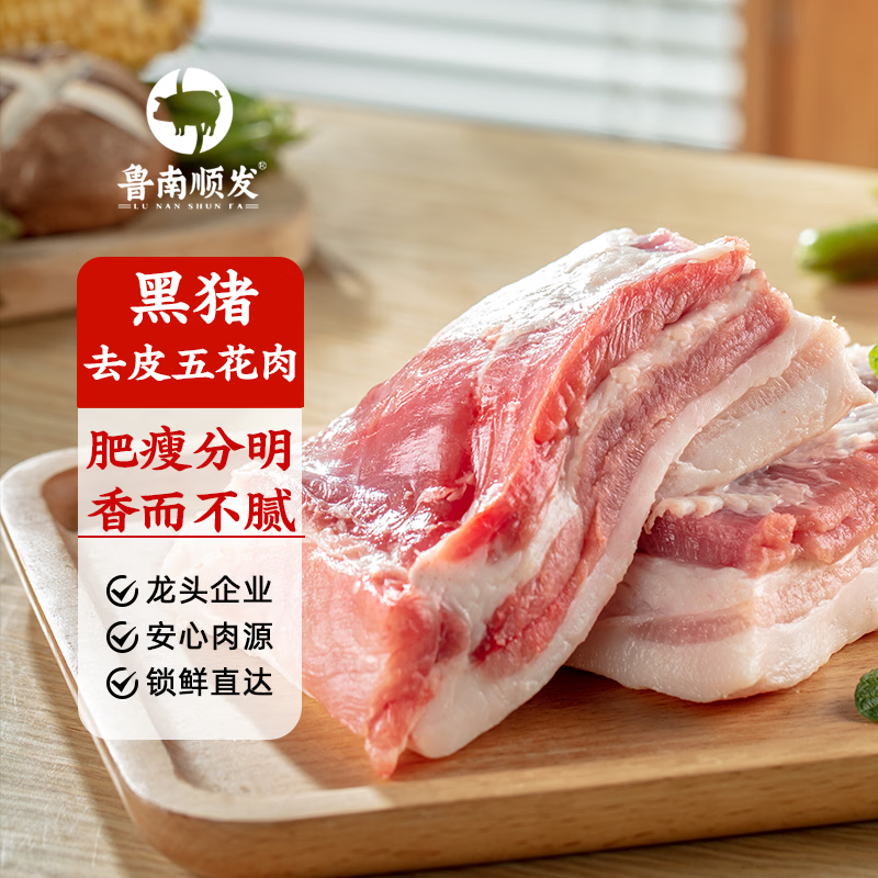 鲁南顺发 黑猪去皮五花肉净4斤