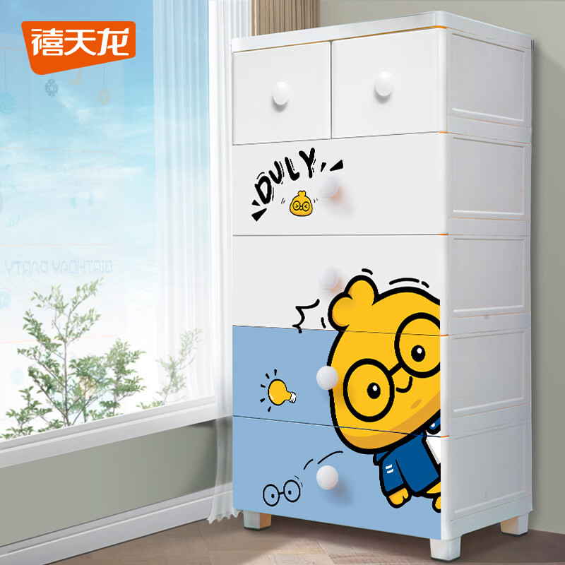 先领8折补帖卷 禧天龙 5层抽屉收纳柜60cm 259.2亓,边角圆润