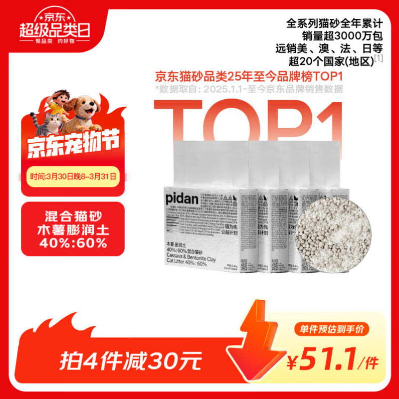 如有9折杭州消费奍 pidan混合猫砂 木薯膨润土40%:60% 2.4k