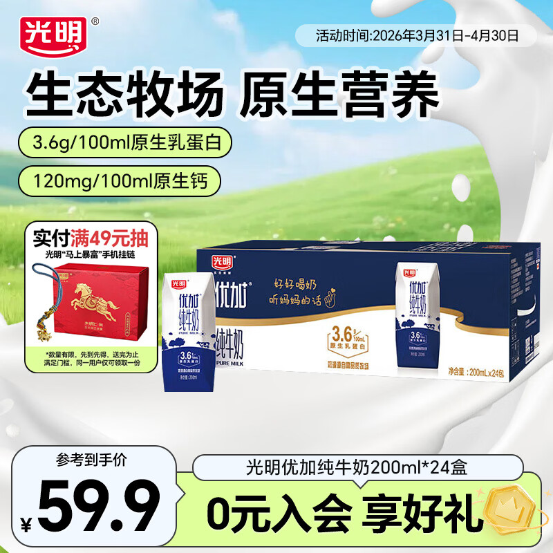 先领119-20卷 光明 优加纯牛奶200ml*24盒 买2件99.8