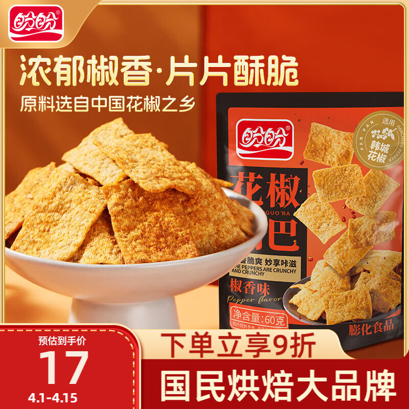 盼盼 花椒锅巴 椒香味 60g*5包 有1首单,凑后6.96 如有领过