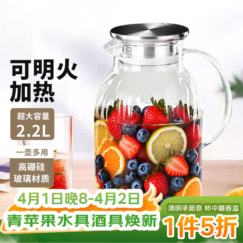 青苹果 高硼硅玻璃壶2200ml 14.9亓,可明火加热使用