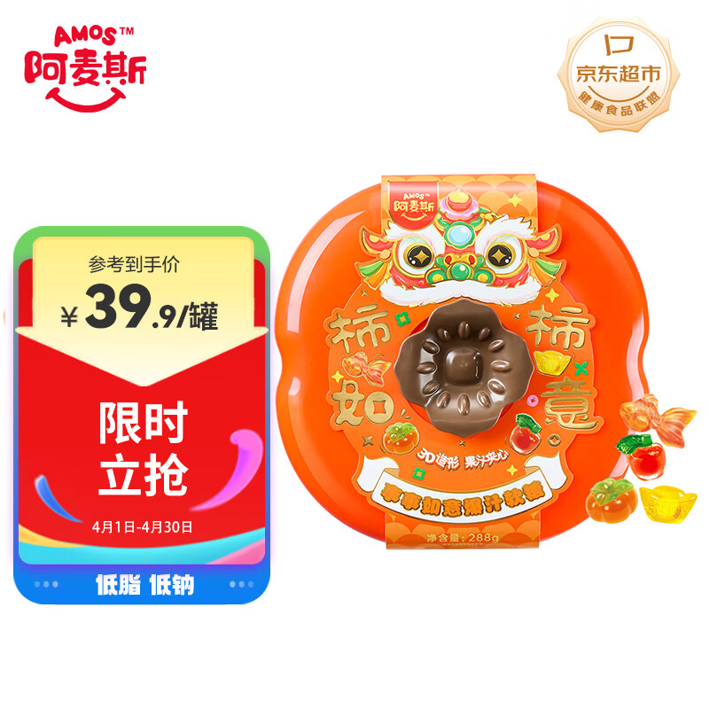 阿麦斯(amos) 水果爆汁软糖288g,