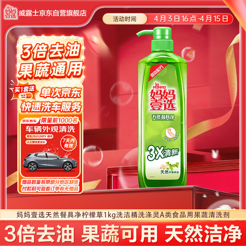 【自营】妈妈壹选 洗洁精1kg 19.9亓 云费,plus无限包邮 *赠