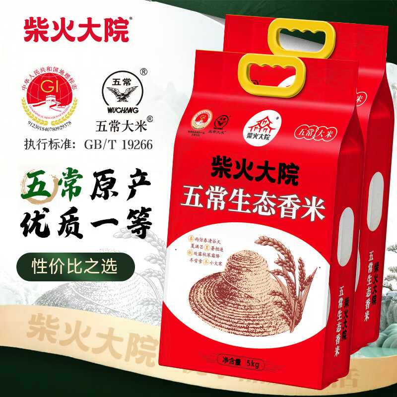 柴火大院 五常大米10斤*2袋 70亓,口感细腻 软糯弹牙 *折35/斤