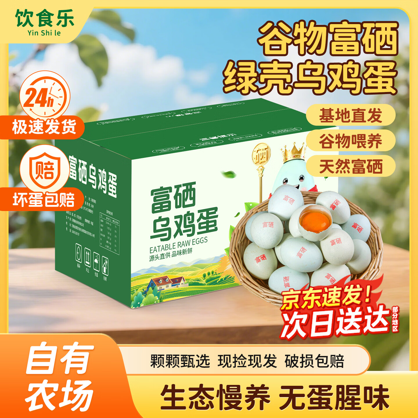 饮食乐 富硒绿壳乌鸡蛋30枚 26.9亓,天然无腥 京东物流