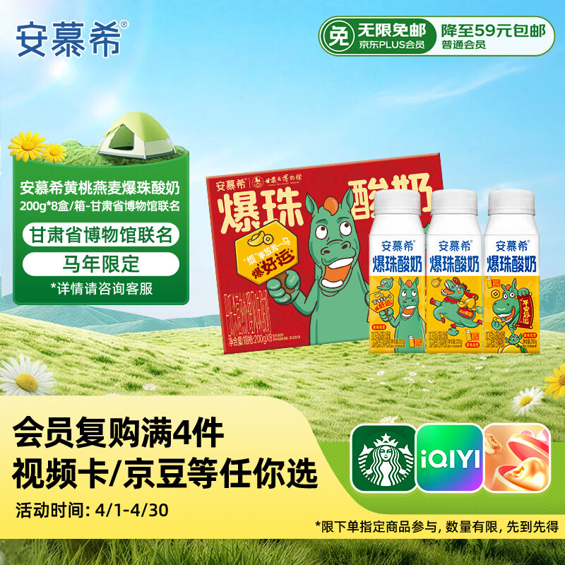 安慕希黄桃爆珠酸奶200g*8瓶 入会39.9亓 买1赠1到手16瓶