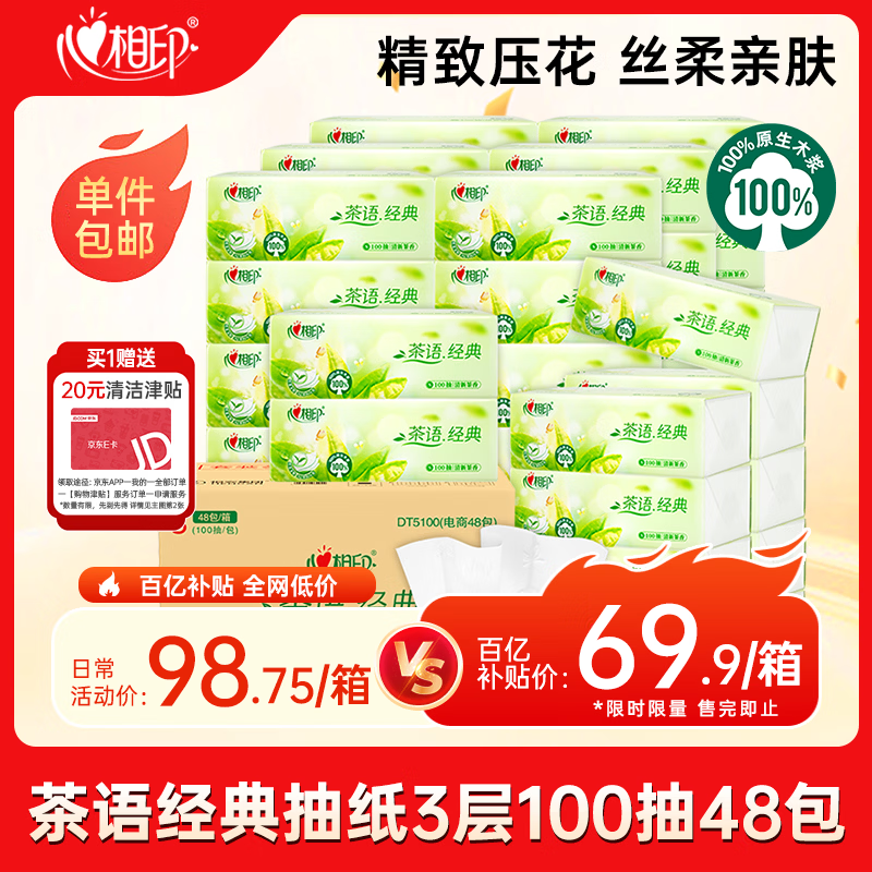 心相印 茶语抽纸100抽*48包 69.9亓自营包邮,plus66.4