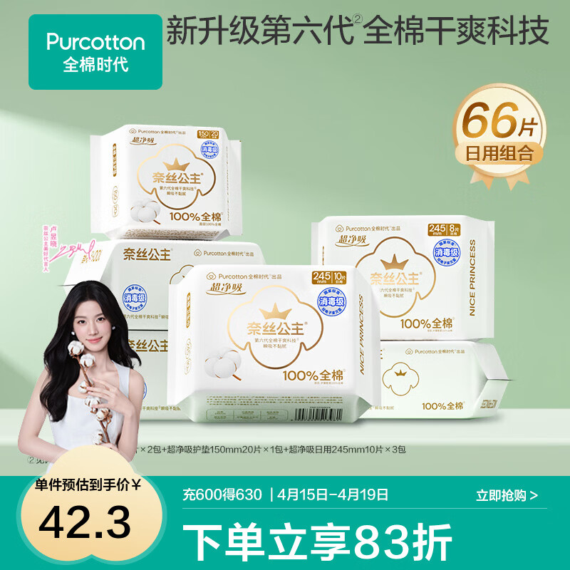 先领60-20补帖卷 全棉时代 消毒级日用卫生巾66片 32.2亓,1
