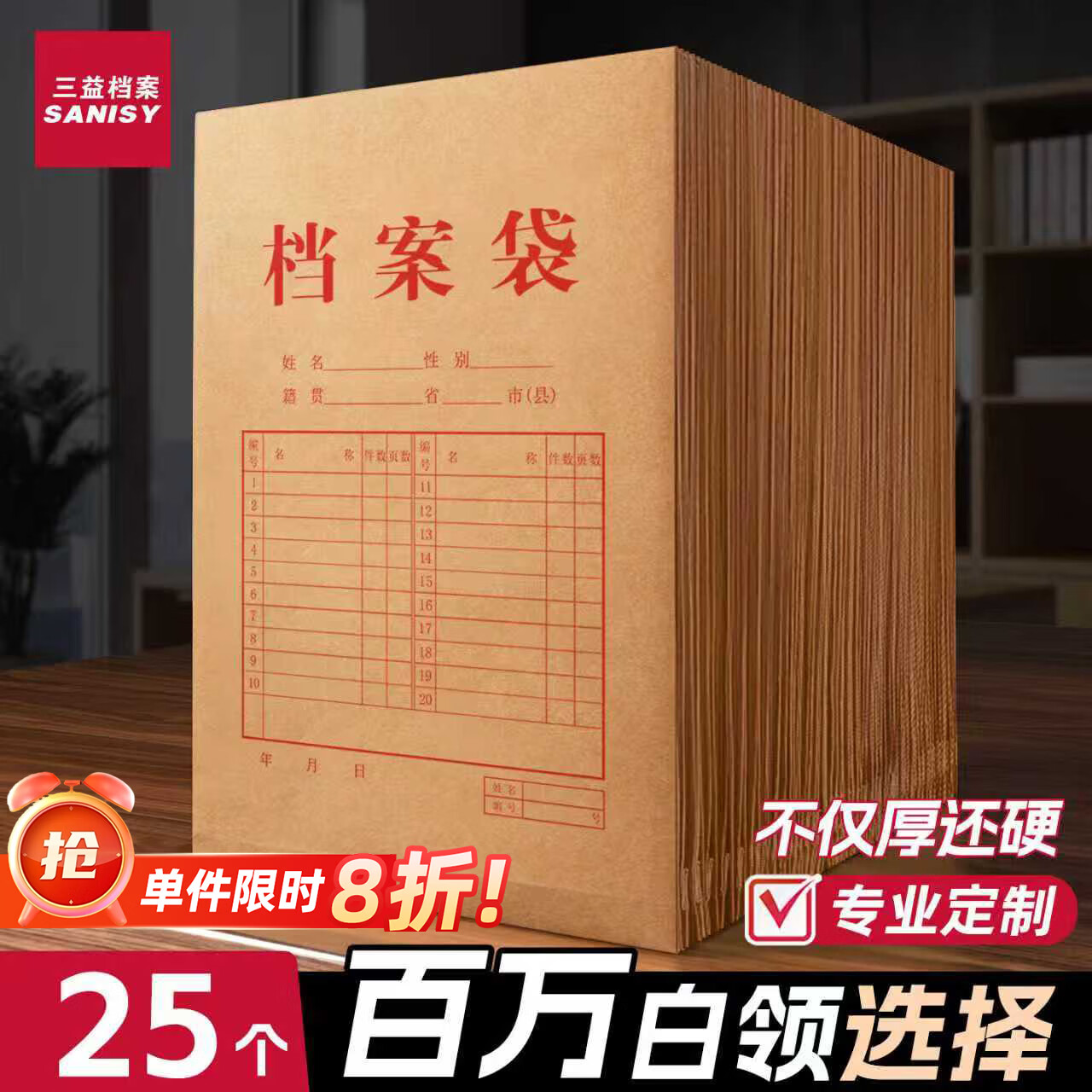 三益档案档案袋牛皮纸A4 3cm*160g*25个,16件20