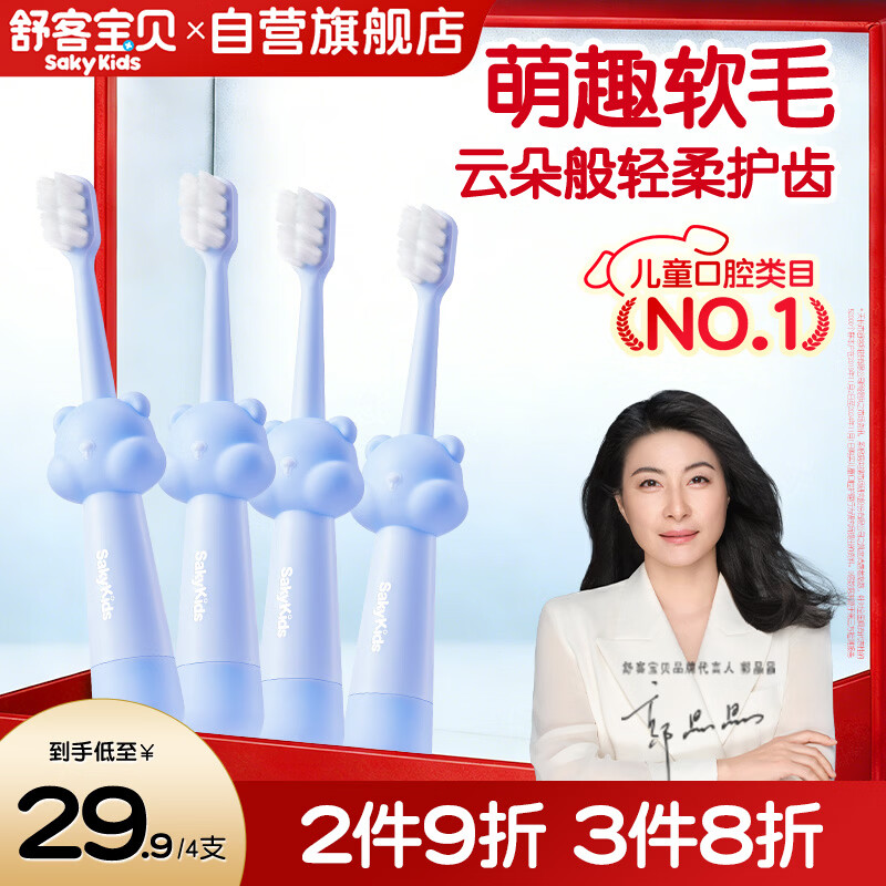 先领26-14卷 舒客宝贝 儿童软毛牙刷4支装 12.9亓自营包邮,p