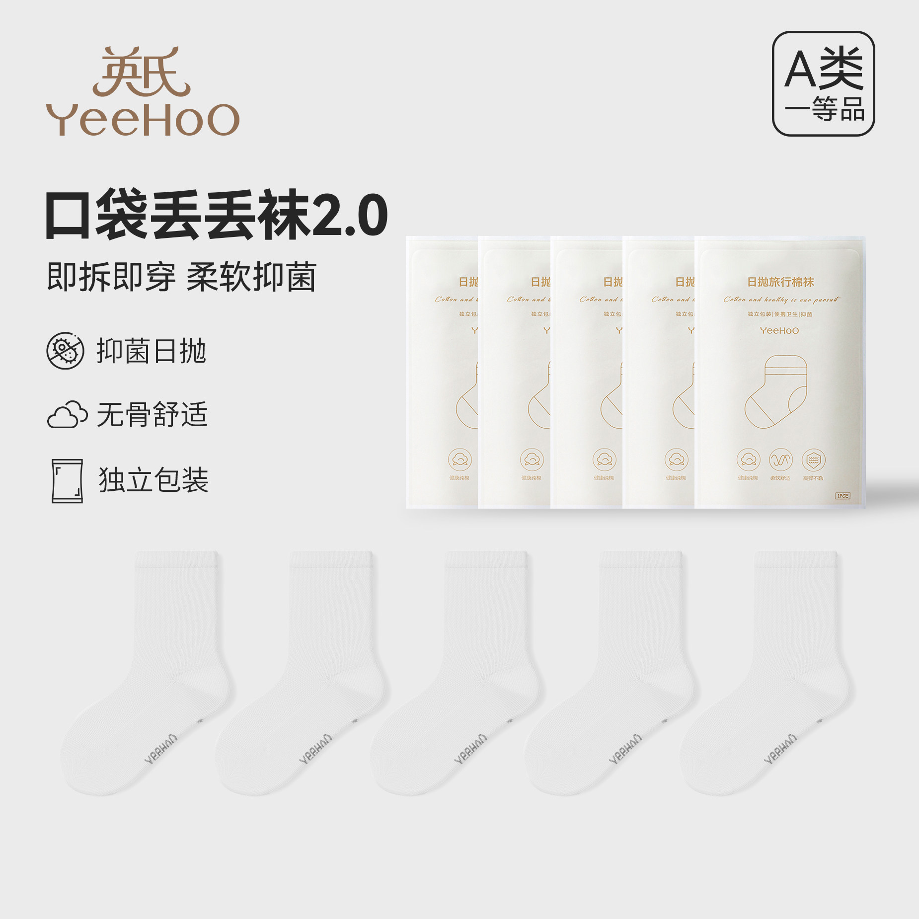 首页关注领100-10券,如图拍下9.3亓 英氏一次性袜子5双装 /