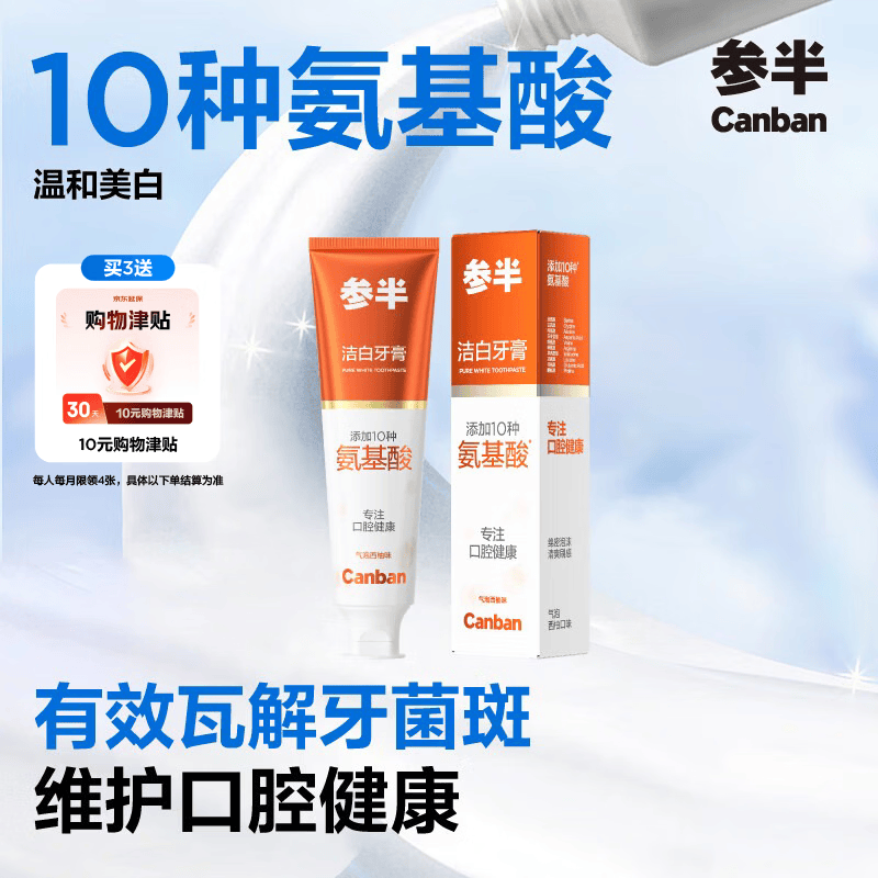 参半 氨基酸洁白牙膏120g 任选1款买3件30亓自营包邮 *再反15