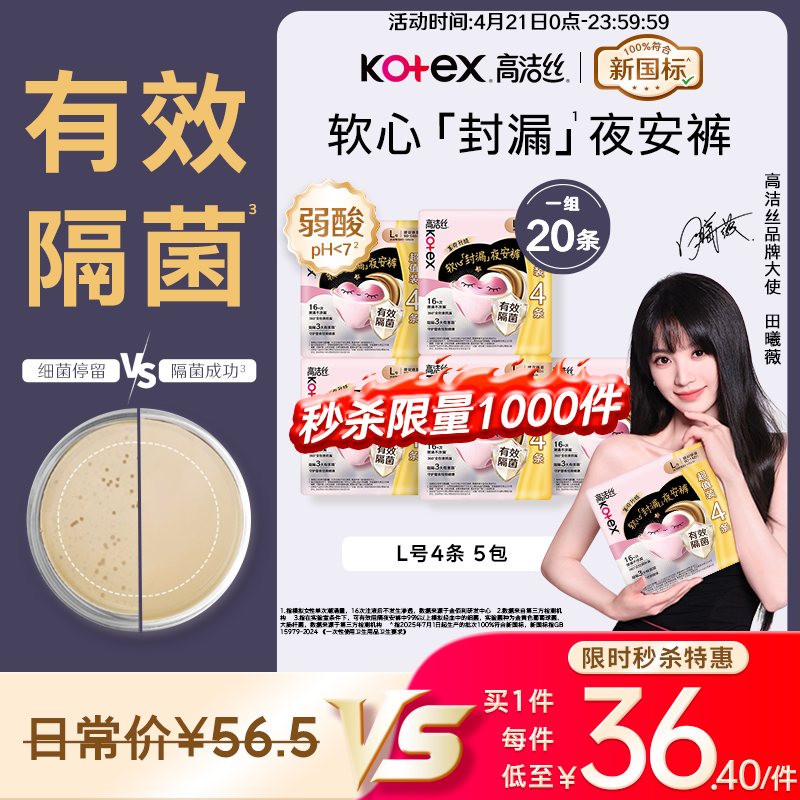 【自营】高洁丝 软心夜安裤20条 36.4亓 云费,Plus无限包邮 *