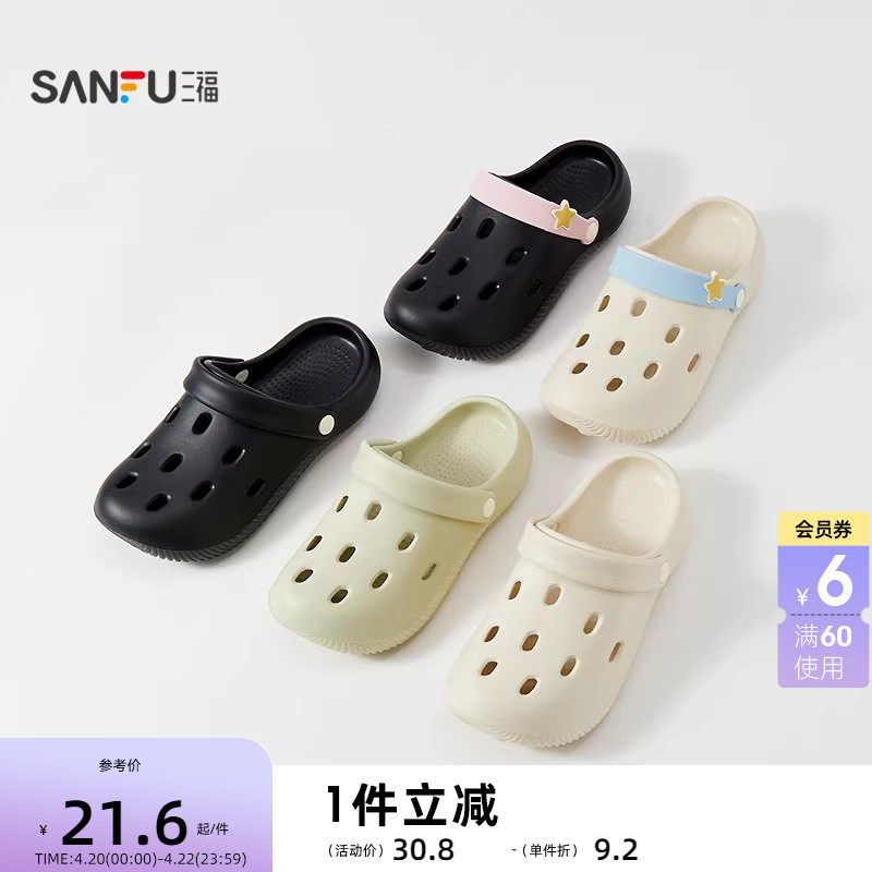 三福洞洞鞋7.2 入会领60-6 过金币 部分号有12首单 湊单2件