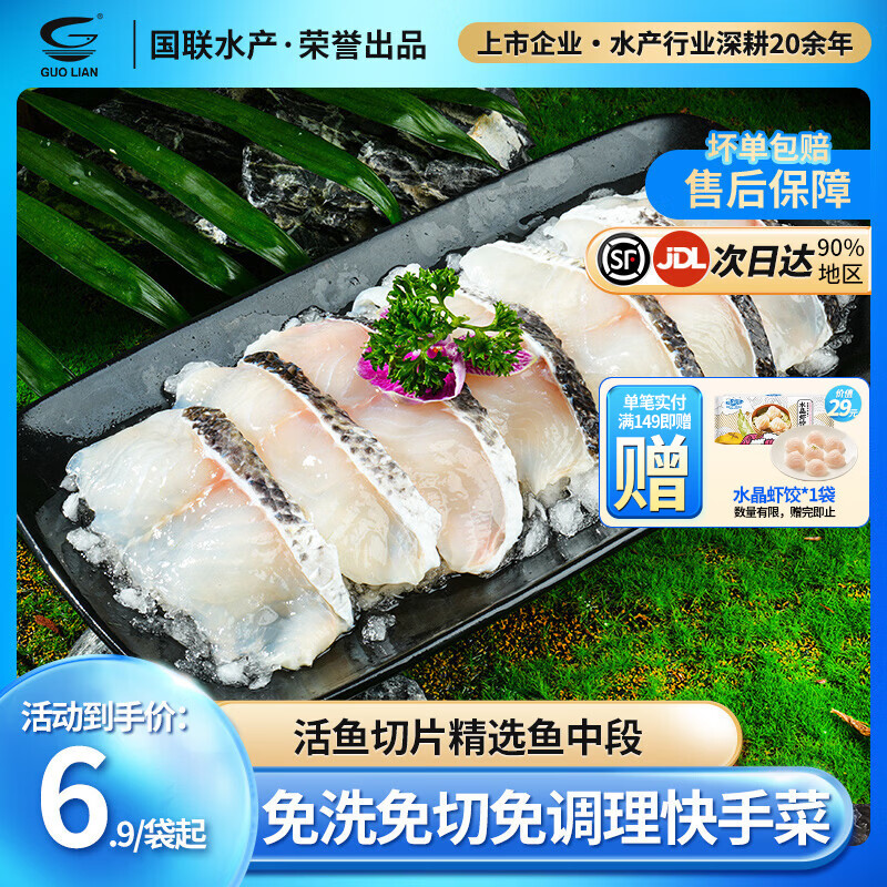 国联 免浆黑鱼片220g*10袋 69.9亓,折6.9/袋 肉质肥美