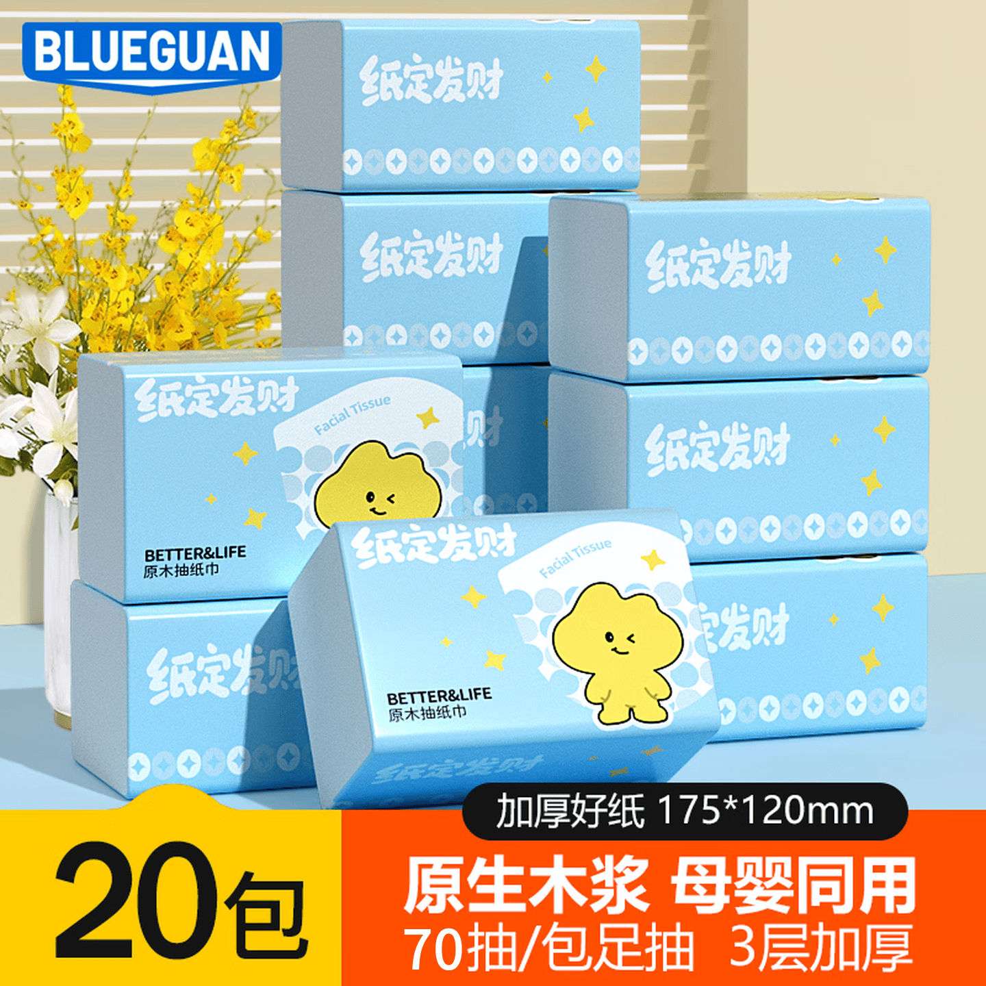 先领9-3卷 蓝冠 原生木浆抽纸70抽*10包 6.9亓,才0.6亓/